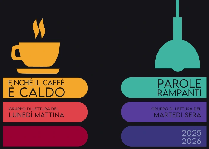 I gruppi di lettura di Tilane sono due: Finché il caffè è caldo il lunedì mattina alle 10 e Parole Rampanti il martedì sera alle 20.45. Da ottobre 2025 a maggio 2026.